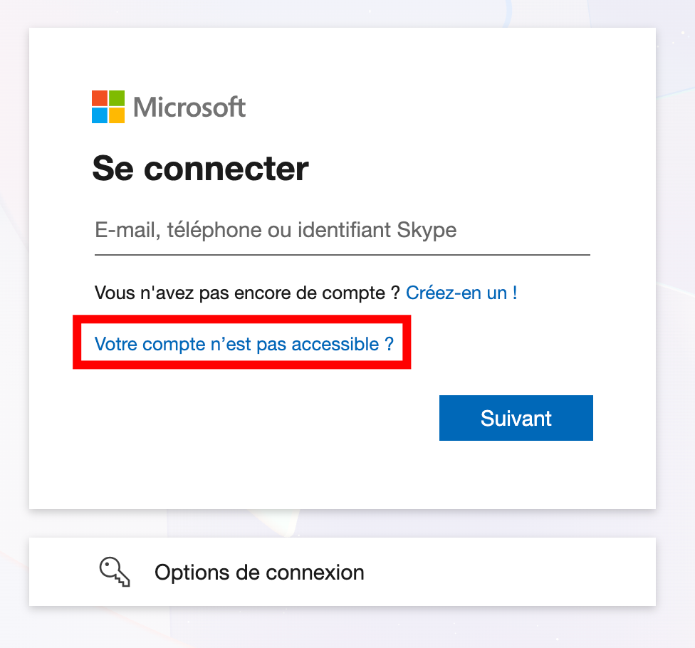 Si vous ne connaissez pas votre mot de passe ou que vous vous connectez pour la 1 ère fois  => réinitialisez votre mot de passe en cliquant sur Votre compte n’est pas accessible ? (attention à l’adresse mail personnelle indiquée)