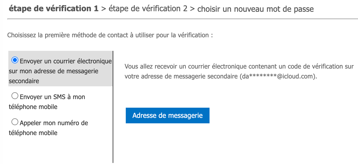 Cliquez sur adresse de messagerie , et rentrez le code envoyé sur votre adresse mail personnelle