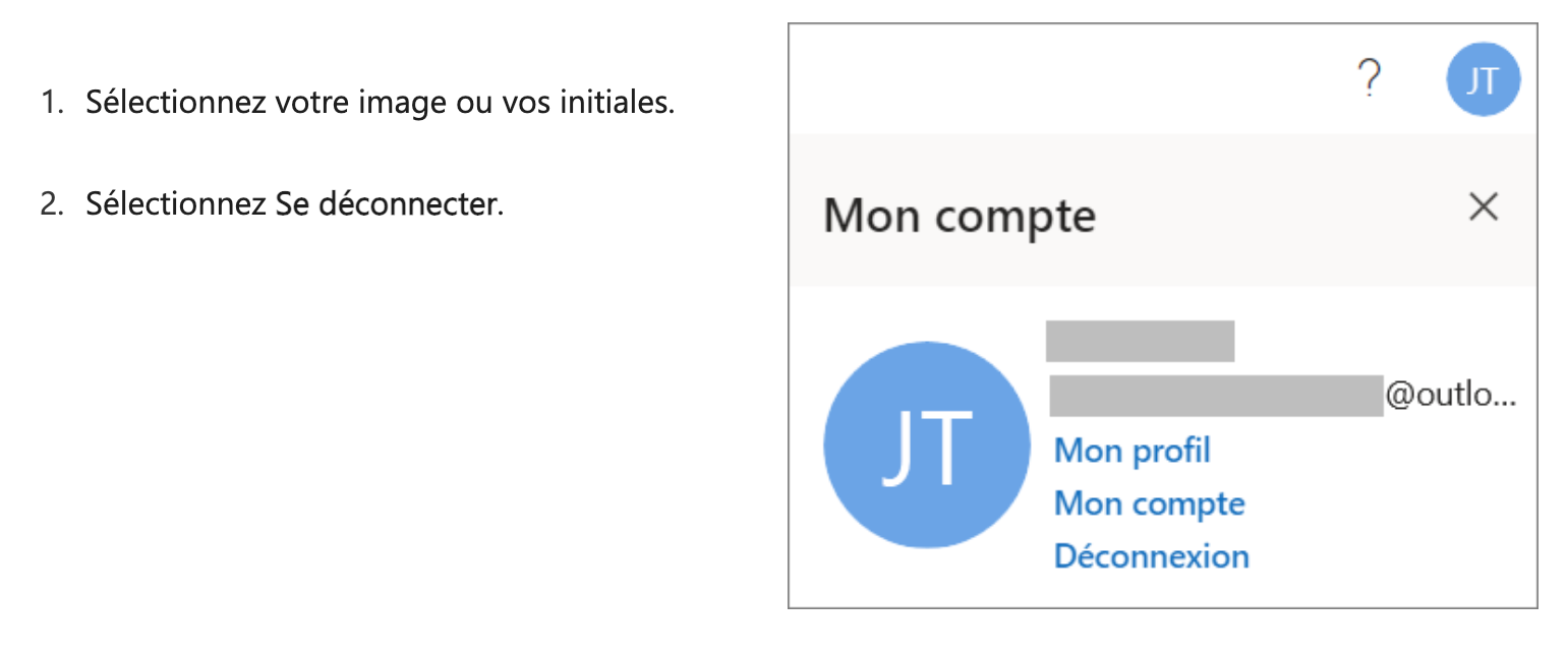 Cliquez sur Supprimer le compte ou Déconnecter puis confirmez.