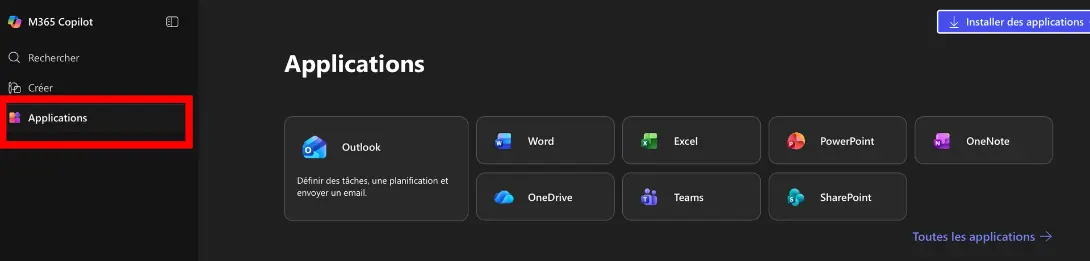 1-Accéder à toutes vos applications Microsoft :